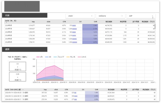 -DeepTrackを使わない場合対象ASP4社においてそれぞれ管理画面から数値データをダウンロードし、必要データを抽出、Excelで集計しレポートを作成。