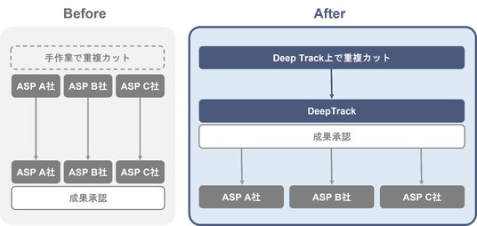 DeepTrack」をご用意しています。連携可能なASPが豊富であるため、 複数社のASPとの連携を実現できます。さらに、利用するASPが増えることで膨らむメディア管理や成果承認の運用工数の課題解決にもつながります。