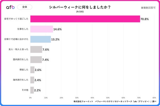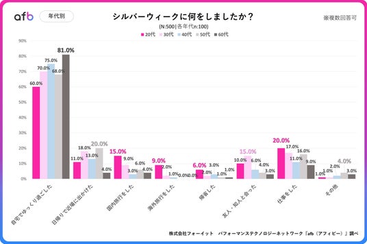 https://www.afi-b.com/ >の開発運用をおこなう株式会社フォーイットは、全国の20歳~60歳までの男女500人を対象にシルバーウィークに関するアンケートを実施し、年代別等の特徴についてまとめました。
