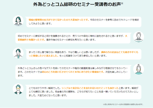 株式会社外為どっとコム(本社:東京都港区、代表取締役社長:⽵内 淳)は、2月25日(土)15時より、当社主催の無料オンラインセミナー『FXのキホンと注文方法がしっかり学べるセミナー』を開催することとなりましたので、お知らせいたします。