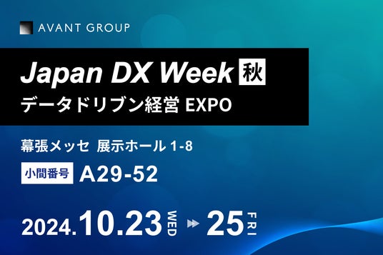 株式会社アバントグループ、株式会社ディーバ、株式会社ジール、株式会社アバントのアバントグループ4社は、2024年10月23日(水)~25日(金)に幕張メッセで開催されるRX Japan株式会社主催「Japan DX Week 秋」に合同出展します。