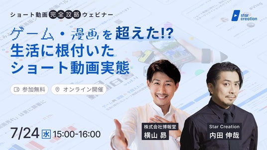 (株)スターミュージック・エンタテインメントあわせて「ショート動画完全攻略ウェビナー - ゲーム、漫画を超えた!? 生活に根付いたショート動画の利用実態。」を2024年7月24日(水)に開催