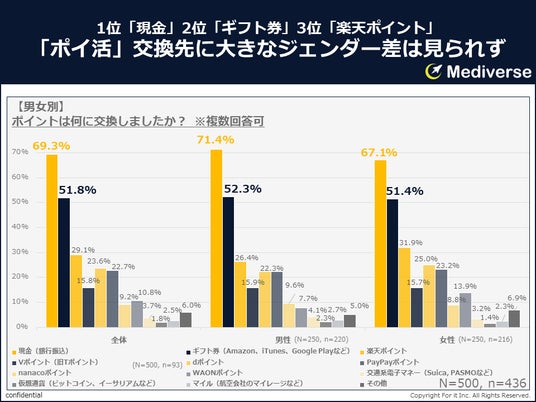 なお、交換先として、女性比率が男性を上回っていたのは、「楽天ポイント」「dポイント」「PayPayポイント」「WAONポイント」の4つであった。