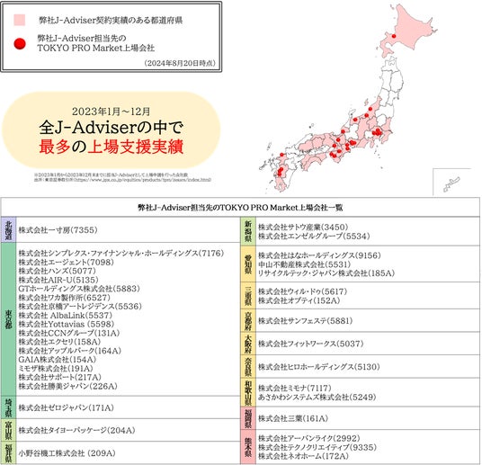 日本M&Aセンターでは、企業成長のさらなる促進・円滑な事業承継・一般市場への上場に向けた体制整備を目的にTOKYO PRO Marketへの上場支援に取り組んでおり、既存上場企業含め全国で100社以上のJ-Adviser契約実績があります。