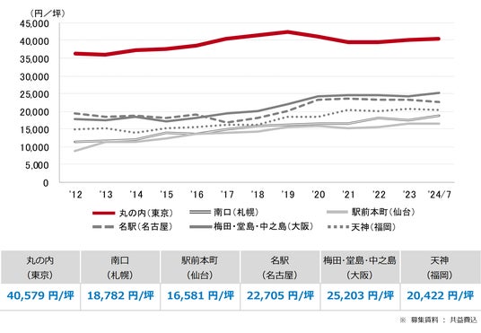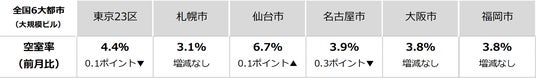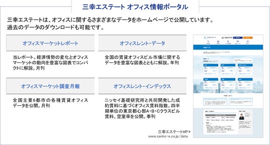 三幸エステート株式会社(本社:東京都中央区、取締役社長:武井重夫)は、2024年7月度の東京都心5区(千代田区、中央区、港区、新宿区、渋谷区)および全国6大都市(東京、札幌、仙台、名古屋、大阪、福岡)の大規模ビル※1のマーケットデータをまとめた「オフィスマーケット2024年8月号」を公表します。