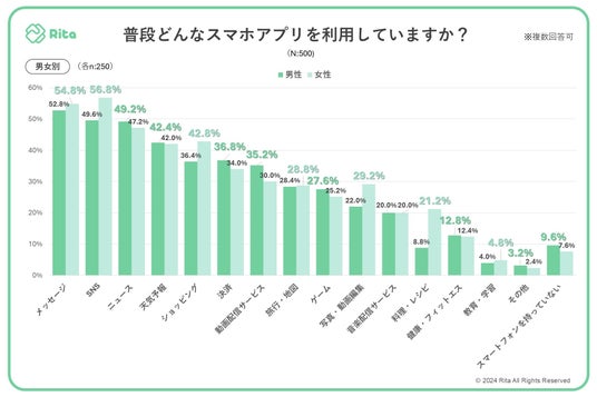株式会社フォーイットの子会社で、リアルアフィリエイト広告プラットフォームを運営するRita株式会社は、全国の20代~60代までの男女500人を対象にスマートフォンに関するアンケートを実施し、年代別等の特徴についてまとめました。