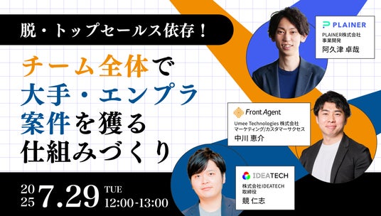 2025年7月26日(火)に開催されるセミナーイベント「脱・トップセールス依存!チーム全体で大手・エンプラ案件を獲る仕組みづくり」に、株式会社IDEATECH 取締役の競仁志が登壇します。