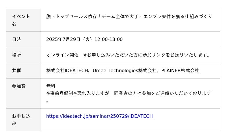 本セミナーでは、属人化を解消し、チーム全体で安定して大手・エンプラ案件を獲得できるようになった