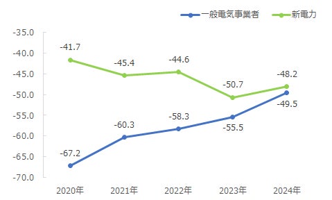 ※一般電気事業者の対象社数は2020年~2022年は2社、2023年以降は9社と変更している
