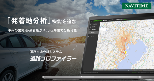 株式会社ナビタイムジャパン(代表取締役社長:大西 啓介、本社:東京都港区)は、2024年10月17日(木)より、道路交通分析システム「道路プロファイラー」に新機能として「発着地分析」を追加いたします。