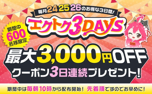 「エクトク3DAYS」特設ページはこちら以下、開催期間中のクーポン詳細や利用条件・配布枚数になります。