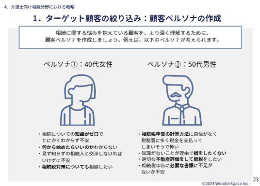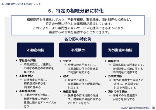 株式会社WonderSpace(本社:東京都港区、代表取締役社長:山本 尚宏)は、『相続分野を扱う士業事務所向け~相続分野における市場感、トレンド予測』に関する資料ダウンロードを開始しました。