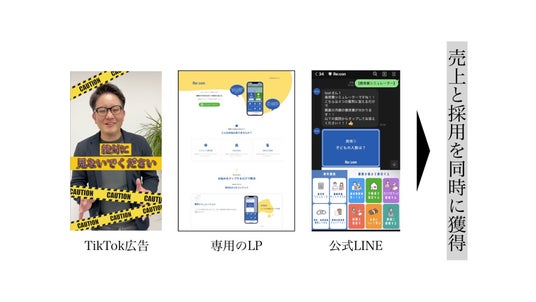 TikTok広告での認知拡大からLINE公式アカウントでのリード育成、採用活動までを一本化。マーケティングと採用活動を同時に進行可能です。
