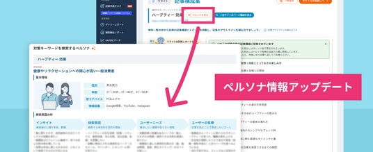 ペルソナ情報を「インサイト/検索意図/ユーザーニーズ/ユーザーの目標」に再構成しました。このペルソナ情報はリライトAI診断レポートの提案内容にも反映され、より一貫性のある高品質なリライトを実現します。