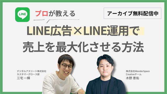 株式会社WonderSpace(本社:東京都港区、代表取締役社長:山本 尚宏)は、デジタルアスリート株式会社(本社:東京都新宿区、代表取締役:長橋 真吾)と実施した共催ウェビナー『【プロが教える】LINE広告×LINE運用で売上を最大化させる方法』のアーカイブ配信を開始いたします。