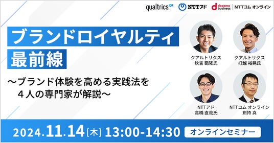NTTコム オンライン・マーケティング・ソリューション株式会社(本社:東京都品川区、代表取締役社長:塚本 良江、以下NTTコム オンライン)は、2024年11月14日(木)に、ブランド体験を高める実践法をお伝えするセミナー「ブランドロイヤルティ最前線」を開催いたします。
