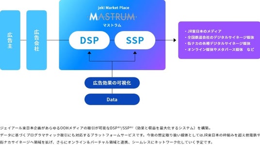 ■MASTRUMとは「MASTRUM(マストラム)」は、先端技術と独自データを基に構築された日本最大級の広告在庫(今後400,000面以上を予定しています)を目指すプラットフォームです。当プラットフォームは、国内OOHメディアをはじめとする様々なメディアのDXを加速させ「広告費用対効果の可視化」「媒体取引のオートメーション化」等、新たな価値を市場に提供します。今後、全国の鉄道会社、街ナカ、オンライン、メタバース等の各種媒体を横断的にプランニングすることで、広告主へは高効率・高付加価値の広告展開を実現し、メディアオーナーへは新たな広告主からの出稿機会の創出を実現します。
