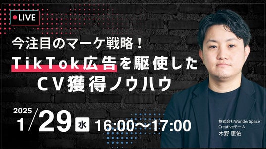 株式会社WonderSpace(本社:東京都港区、代表取締役社長:山本 尚宏)は、『【今注目のマーケ戦略!】TikTok広告を駆使したCV獲得ノウハウ』をテーマにウェビナーを開催します。