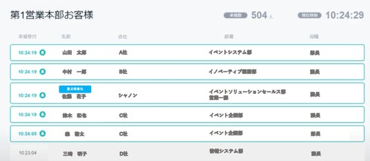 株式会社シャノン(本社:東京都港区、代表取締役社長:中村 健一郎、証券コード:3976、以下シャノン) は、企業が行う顧客招待イベントの管理機能として、来場アテンドをよりスムーズに行うことができる新機能(以下 リアルタイム来場モニタ機能)を業界初(※)で提供開始したことを発表します。なお、本機能は特許も出願中です。