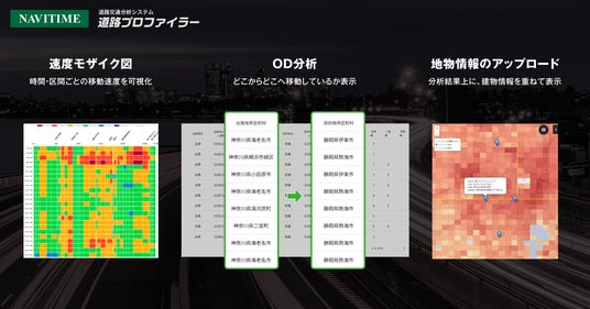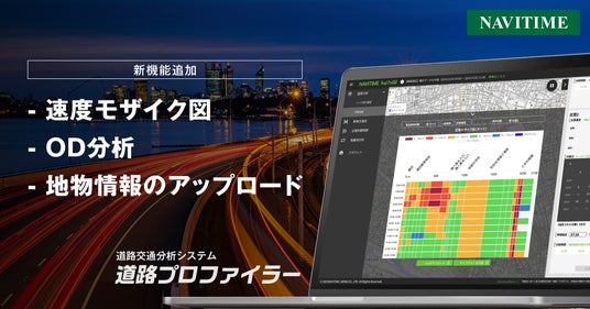 株式会社ナビタイムジャパン(代表取締役社長:大西 啓介、本社:東京都港区)は2025年2月4日(火)より、道路交通分析システム「道路プロファイラー」にて、3つの新機能を追加いたします。道路単位の渋滞状況や、出発地・到着地の分析、施設情報を考慮した分析が可能になります。