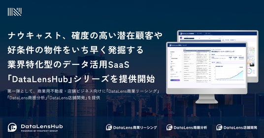 次世代金融インフラの提供を通して組込型金融を実現するFinatextグループの株式会社ナウキャスト(本社:東京都千代田区、代表取締役CEO:辻中仁士、以下「当社」)は、確度の高い潜在顧客や好条件の物件をいち早く発掘する業界特化型のデータ活用SaaS「DataLensHub(データレンズハブ)」シリーズの提供を本日2025年2月5日(水)から開始します。第一弾として、商業用不動産・店舗ビジネス向けに「DataLens商業リーシング」「DataLens商圏分析」「DataLens店舗開発」の提供を開始します。当社が有する業界内外の3rdパーティデータを複数活用し、業務に組み込まれた分析ロジックによって、リーシング営業や店舗物件発掘の効率性向上と現場の意思決定を支援します。