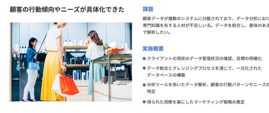 - データ統合・分析前後の企画、仮説設定、実行まで一気通貫で伴走