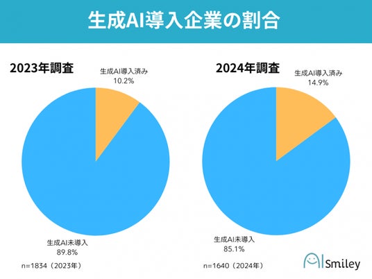 AIポータルメディア「AIsmiley」を運営する株式会社アイスマイリー(東京都渋谷区、代表取締役:板羽晃司)は、東証プライム企業1640社に対して生成AIの導入実態を調査した「東証プライム企業生成AI導入実態調査」を2024年11月27日(水)に公開しました。