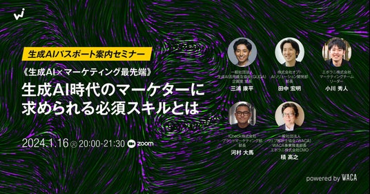 2024/1/16(火)20:00 - 21:30 生成AIパスポート案内セミナー 【生成AI×マーケティング最先端】生成AI時代のマーケターに求められる必須スキルとは