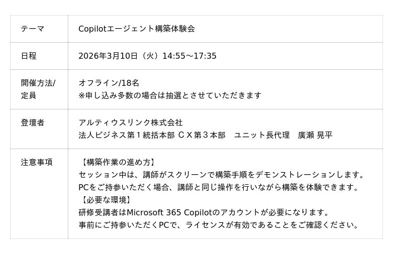 アルティウスリンク採用DXを加速させるAIエージェントの最前線と、Copilotエージェントの構築方法をご紹介