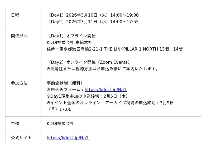 アルティウスリンク株式会社(所在地:東京都渋谷区、代表取締役社長:那谷 雅敏、以下 アルティウスリンク)は、2026年3月10日・11日にKDDI主催の「KDDI Business AI Fes 2026」において、オンラインセッションおよびハンズオンワークショップに登壇します。