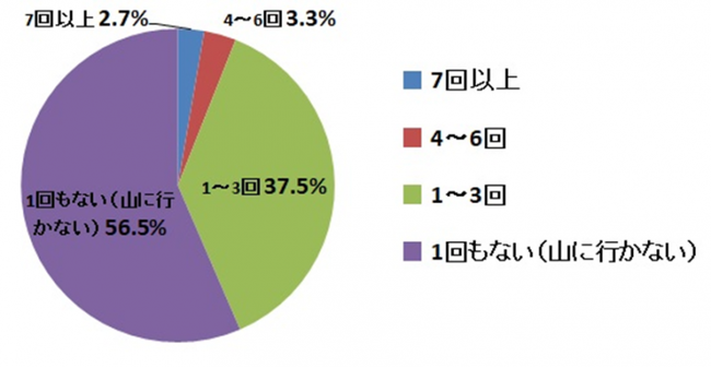 「1~3回」が最も多くて、全体の37.5%。「山に行かない」人が半数を超えるのは、設問1の「海派」の比率とほぼ一致しています。