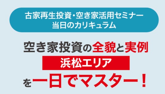 浜松市では初となる無料セミナーを開催。理事長と第一線の再生士が、成功事例と具体的な収益モデルを公開し、30名限定で参加者を募集します。