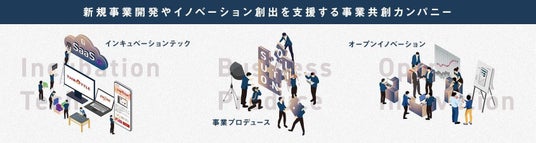 事業内容:インキュベーションテック事業、事業プロデュース/新規事業開発支援事業、オープンイノベーション事業(スタートアップ投資、VCファンド運営、CVC設立・運用支援、共同事業/JV創出等)、イノベーター人材育成支援、地方創生・地域イノベーション事業、イノベーション・ワークプレイス事業