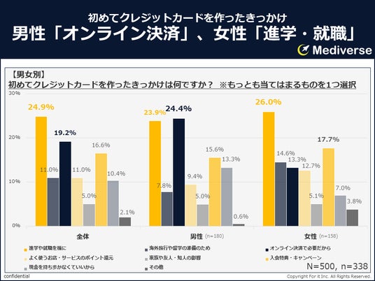 男女別に見ると、初めてクレジットカードを作ったきっかけには、ジェンダー差が見られた。