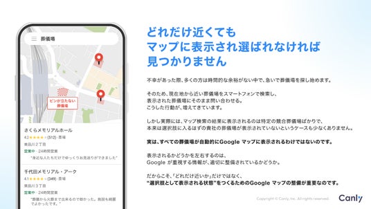Google ビジネスプロフィール(TM)︎・HP・各SNSの一括管理サービス「カンリー店舗集客」の開発・提供を行う株式会社カンリー(所在地:東京都品川区、代表取締役:辰巳 衛,秋山 祐太朗)は、葬儀業界向けに【「あれ?こっちの葬儀場の方が良いかも...」と、思われないためにできること検討者が見ている Google マップを整備すべき理由】を無料公開しましたので、ご案内いたします。レポートの無料請求はこちら不幸があった際、多くの方は時間がない中で葬儀場を探します。
