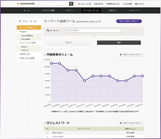 アフィリエイト大学|キーワード調査ツールを活用したアフィリエイトコンテンツの作り方アクセストレードでは、今後もアフィリエイターの皆さんがユーザーファーストのアフィリエイトコンテンツを提供するために活用できるツールを提供してまいります。
