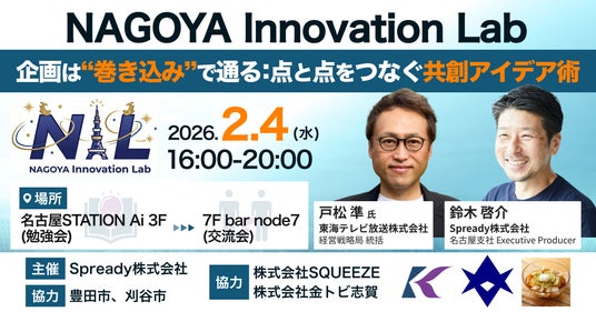 東海テレビ放送株式会社(本社:名古屋市東区)は、Spready株式会社と共に2026年2月4日(水)、日本最大級のオープンイノベーション拠点「STATION Ai」にて、東海地域の新規事業担当者や挑戦者を対象とした月例イベント「NAGOYA Innovation Lab(NIL)」を開催します。