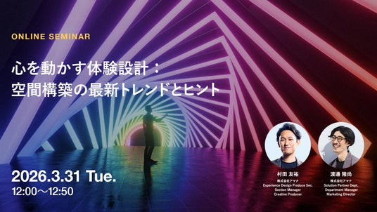 コミュニケーション変革をクリエイティブで実現する株式会社アマナ(本社:東京都品川区、代表取締役社長:金子剛章、以下「アマナ」)は、2026年3月31日(火)、『心を動かす体験設計:空間構築の最新トレンドとヒント』をテーマにウェビナーを開催します。