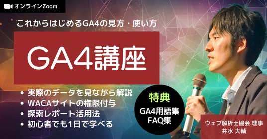 【ウェブ解析士講座】2024/4/18(木)オンライン開催 これからはじめるGoogle アナリティクス4(GA4)の見方・使い方講座
