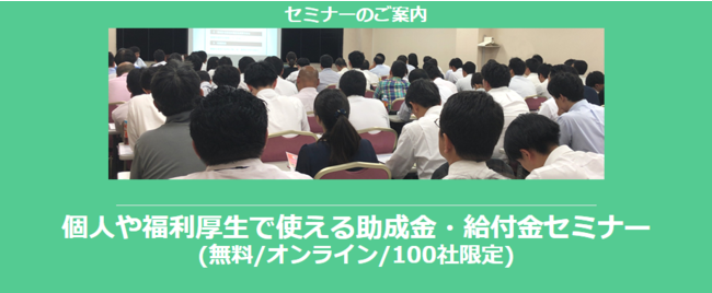 そこで今回「個人や福利厚生で使える助成金・給付金セミナー」の配信を開始します。