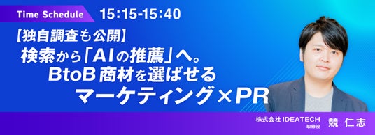 ファクトに基づいたコンテンツ開発とマーケティング支援を行う、株式会社IDEATECH(本社:東京都港区、代表取締役社長:石川友夫、以下 IDEATECH)は、マジセミ株式会社(本社:東京都渋谷区、代表取締役:寺田 雄一)主催のオンラインセミナー「2026年、BtoBマーケティング大予測 ~生成AIで変わる検索・広告・営業・Web・体験。顧客接点とオペレーションの未来を読む12の予測~」に登壇いたします。
