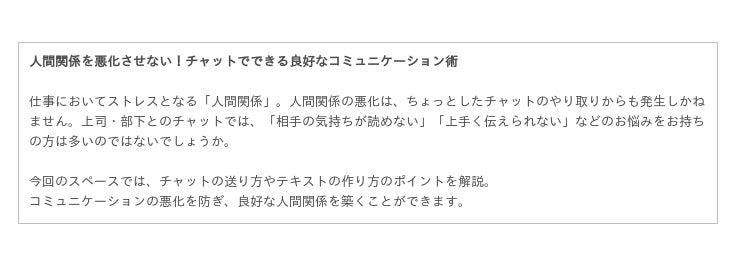 仕事においてストレスとなる「人間関係」。人間関係の悪化は、ちょっとしたチャットのやり取りからも発生しかねません。上司・部下とのチャットでは、「相手の気持ちが読めない」「上手く伝えられない」などのお悩みをお持ちの方は多いのではないでしょうか。今回はTwitterのスペースに『テキストコミュニケーション力の基本 誤解なくニュアンスまで伝わる77のルール』の著者である広報の小澤が登壇し、チャットの送り方やテキストの作り方のポイントを解説します。コミュニケーションの悪化を防ぎ、良好な人間関係を築くヒントにお役立てください。