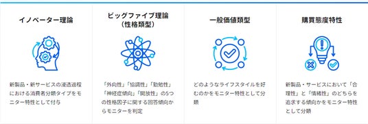 株式会社アスマークマーケティング×学術理論を基にした高感度消費者セグメント。消費者モニターをあらゆる理論でタイプ分類することで、定量調査の分析軸や、定性調査のリクルート要件に活用できます。