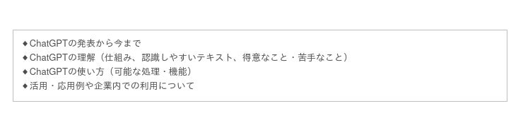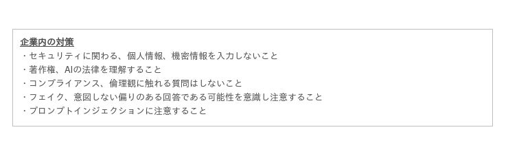 現在ChatGPTを仕事で使用する方が増えてきています。ChatGPTは便利な反面、すべての回答が信用できる情報だとは限りません。そこで最後には、仕事でChatGPTを使う際に企業が気を付けるべきことを伝えていきました。