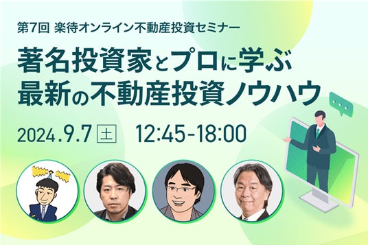 https://www.rakumachi.jp/)は、2024年9月7日(土)に不動産投資家1000人を対象としたオンライン不動産投資セミナーを開催いたします。このセミナーは楽待が主催するもので、過去6回のセミナーでは1000人の定員が全て満席になりました。応募は