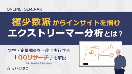 株式会社アスマーク(東京都渋谷区東、代表取締役:町田正一)は、2025年03月18日(火)13:00に、「QQリサーチ」をテーマにエクストリーマー&CGOA分析の重要性や実際の調査事例について、オンラインセミナーで解説いたします。