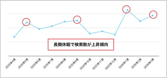 GW、年始、春休みなどの連休に検索数が上昇傾向