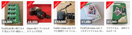 「メルカリ」上で取引された「フィルムカメラ」「インスタントカメラ」商品(※一部)