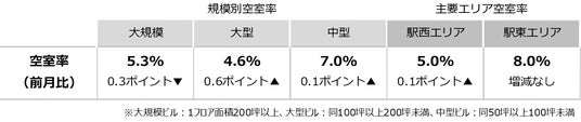 空室率 5ヵ月ぶりに小幅に上昇 「大型」は0.6ポイントの大幅な上昇