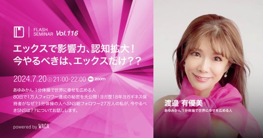 2024/7/20(土)21:00~22:00 エックスで影響力、認知拡大!今やるべきは、エックスだけ??【Flashセミナー】Vol.116